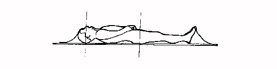 The model was then photographed lying on a soft mattress with his head and shoulders supported six inches higher than his pelvis on soft cushions as shown in Figure Two. The model again tried to assume the position of the image on the shroud.